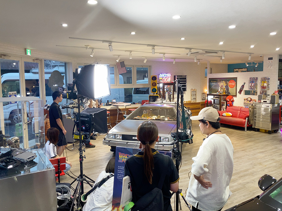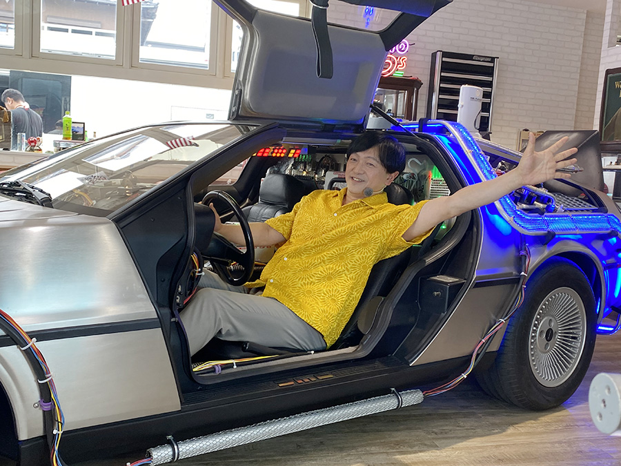 新曲の「タイムマシンにのって」のMVに当社のデロリアンを使用してもらいました。