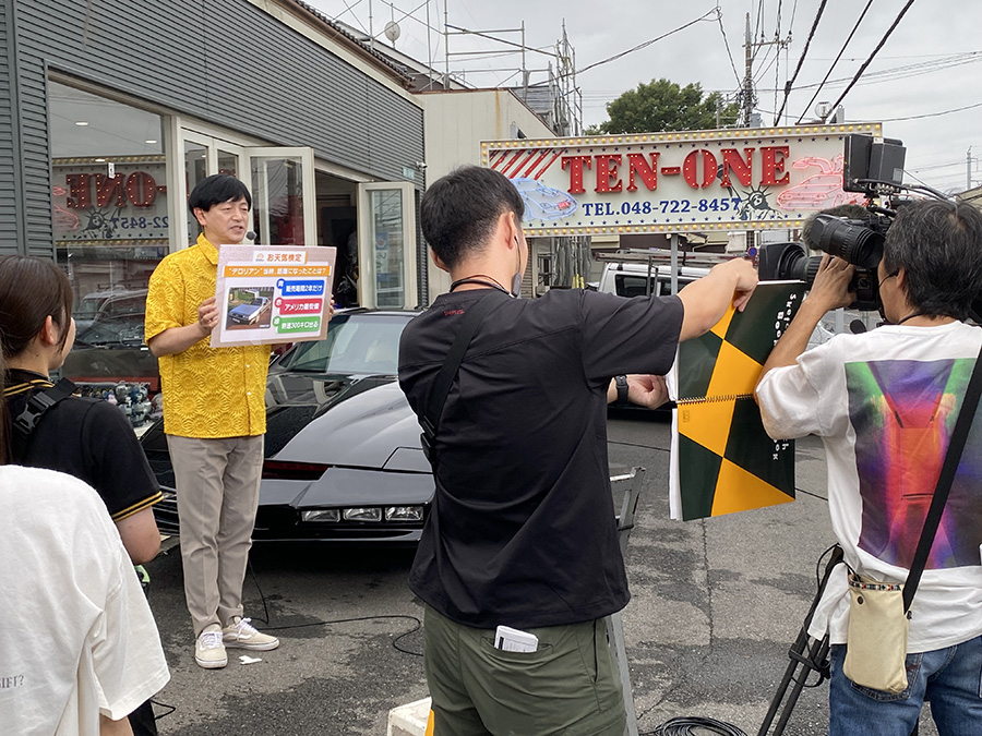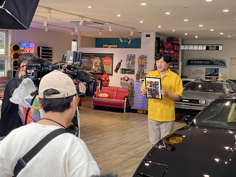 久松かおりさんと共にナイト2000やデロリアンの魅力を面白おかしくご紹介しています。